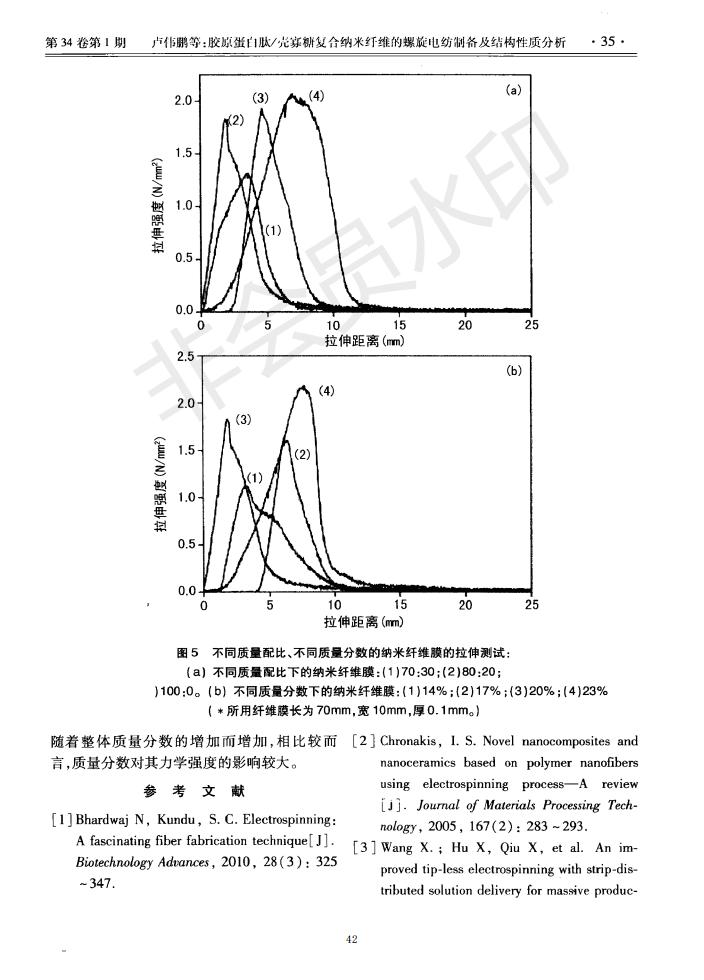 Spiral electrospinning preparation of collagen peptide/oligochitosan composite nanofibers and analys
