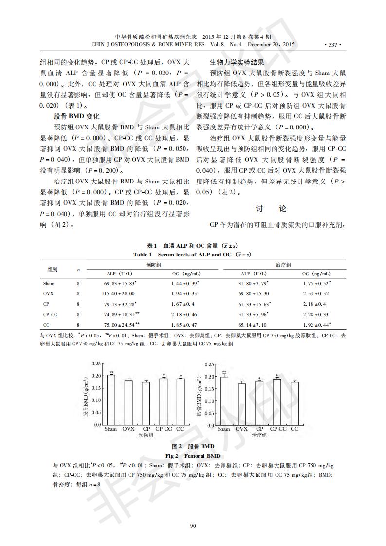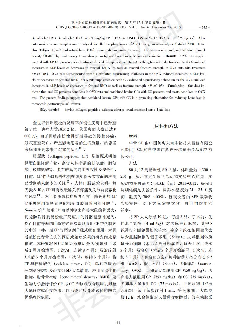 Preventive and therapeutic effects of collagen peptide and calcium citrate on bone loss in ovariecto
