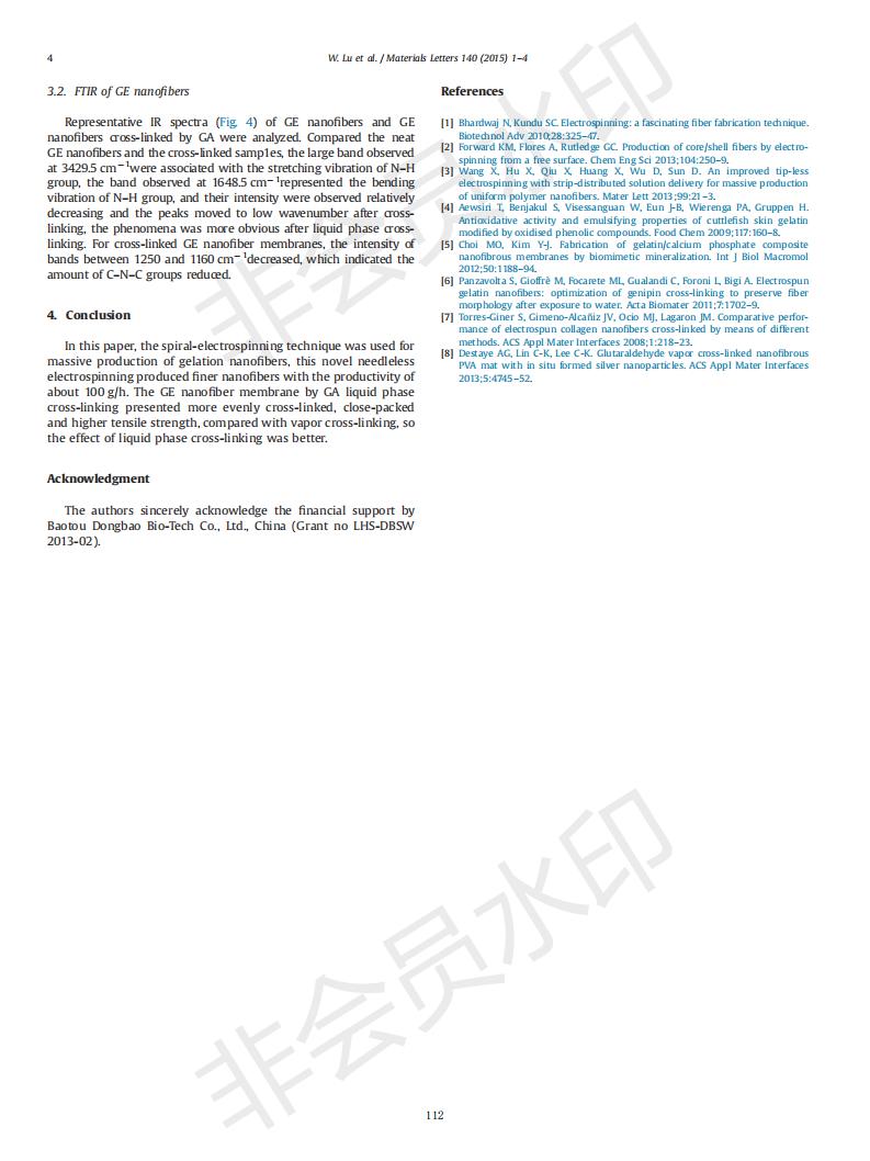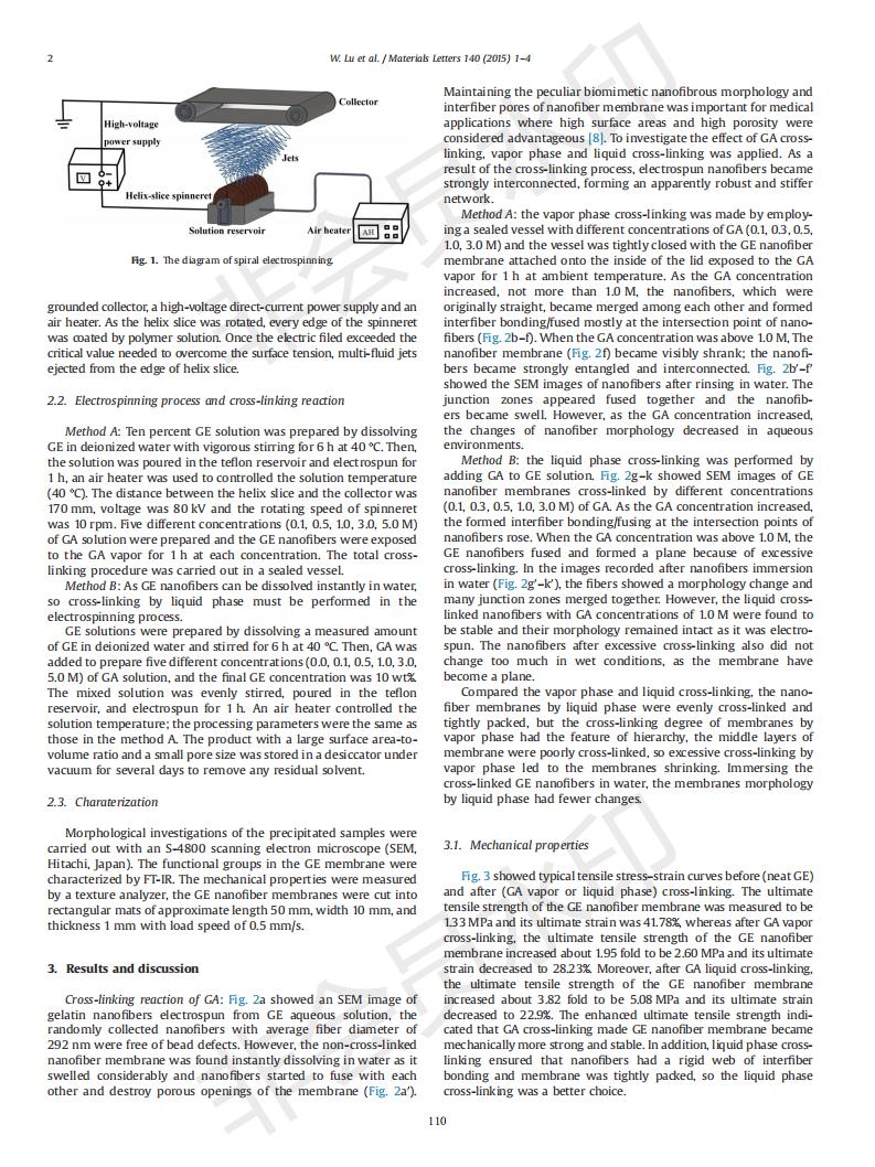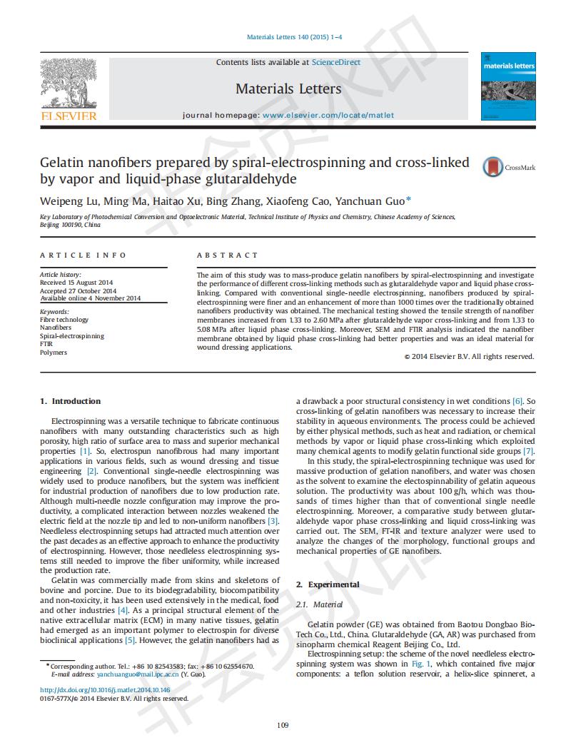 Preparation of gelatin nanofibers based on spiral electrospinning and crosslinking of glutaraldehyde