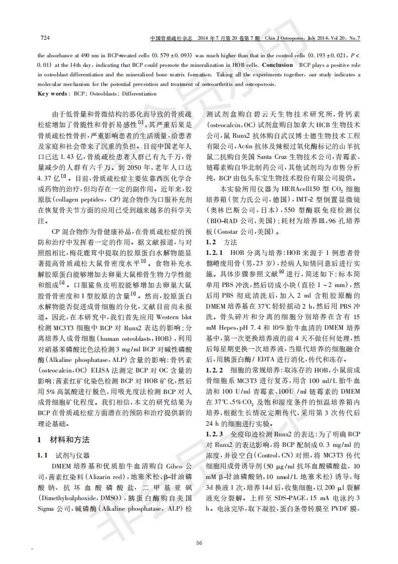 牛骨膠原肽對成骨細胞分化的影響