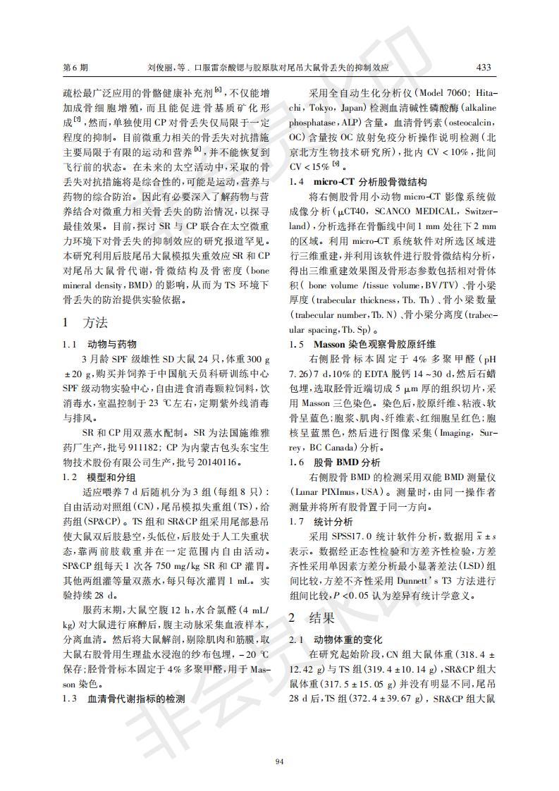 口服雷奈酸鍶與膠原肽對尾吊大鼠骨丟失的抑制效應