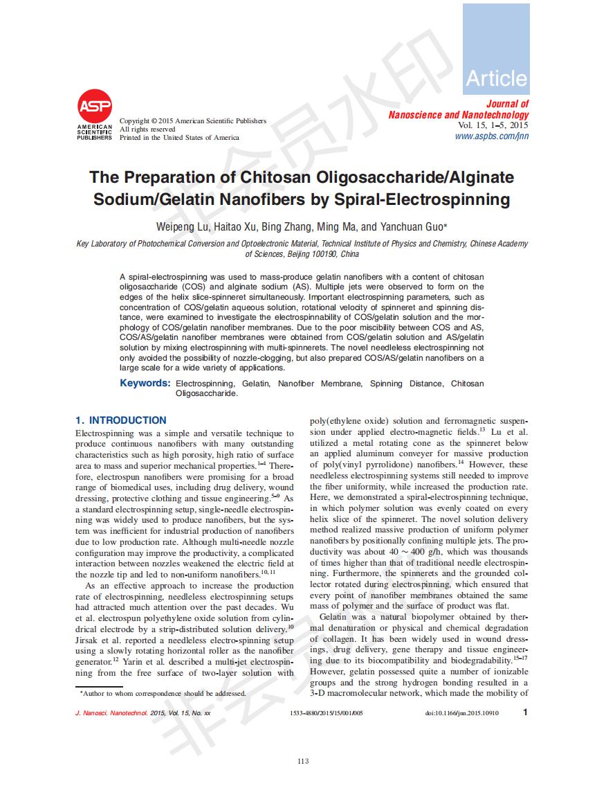 基于螺旋靜電紡絲技術的殼寡糖/海藻酸鈉/明膠納米纖維的制備研究